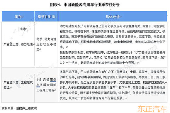 行業(yè)下游季節(jié)性影響主要為工程建筑行業(yè),工程建筑行業(yè)因4-7月份多為雨季,建筑工程很難開工,從而對新能源專用車行業(yè)產(chǎn)生影響。