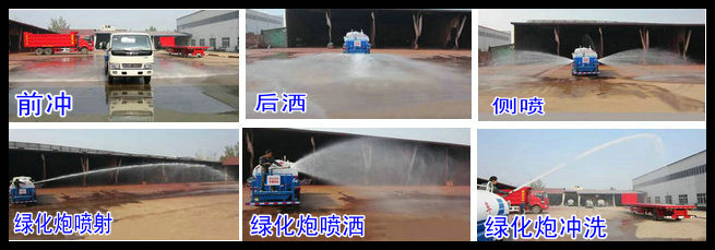 灑水車又稱為噴灑車、多功能灑水車、園林綠化灑水車、水罐車、運水車。灑水車適合于各種路面沖洗,樹木、綠化帶、草坪綠化,道路、廠礦企業(yè)施工建設,高空建筑沖洗。具有灑水、壓塵、高、低位噴灑前帶后平臺高炮,可進行農(nóng)藥噴灑、護欄沖洗、等功能。