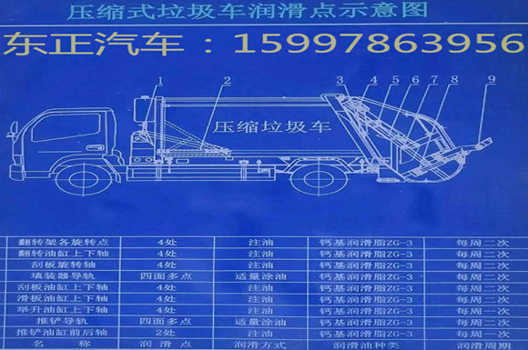 常規(guī)使用中最經(jīng)常的維護(hù)就是對(duì)各個(gè)活動(dòng)點(diǎn)旋轉(zhuǎn)點(diǎn)的潤(rùn)滑,對(duì)于壓縮式垃圾車來(lái)說就是加注黃油。(切記只要裝有黃油嘴的地方都要加注黃油,時(shí)間一周不得低于一次,在加注黃油的同時(shí)順便檢車一下各個(gè)部件的磨損情況,如有磨損嚴(yán)重的要及時(shí)的跟換零部件,以免損壞油缸。)