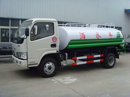 4選配裝置:灑水車前裝有鴨嘴形噴嘴或圓頭沖嘴,后面裝有圓柱形灑水噴嘴或蓮蓬頭噴嘴,后部有工作平臺,裝配有水炮。后部還可裝壓塵噴霧裝置噴嘴。可選配20米綠化噴藥卷盤、高空作業(yè)、隨車吊貨運(yùn)等功能。