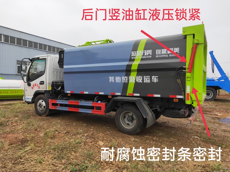 掛桶式污泥清運車,廂體液壓油缸舉升卸料,頂蓋可開手動翻蓋對接漏斗、傳送帶裝載、也可提升掛桶裝載,后蓋液壓鎖緊(四周耐腐蝕密封條密封),運輸中環(huán)保無滴漏,駕駛室內(nèi)外兩用均可操作。箱體連接處滿焊加工,防腐防銹處理,內(nèi)部平整光滑,保證了自卸含水污泥、糞污的平順性,后蓋四周耐腐蝕密封條密封,保障了密封性使其達到運輸中滴水不漏。