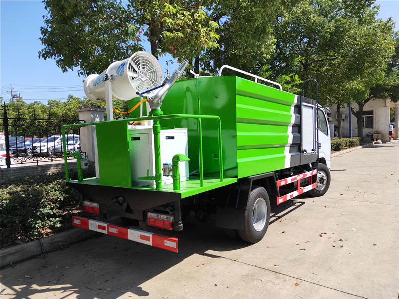 灑水車(chē)工作主要由發(fā)動(dòng)機(jī)帶動(dòng)變速箱,變速箱上安裝的取力器帶動(dòng)灑水車(chē)水泵產(chǎn)生動(dòng)力,將罐體內(nèi)部的水通過(guò)管路噴灑出去,水泵可自吸自排。可根據(jù)用戶(hù)需求選配抑塵霧炮。