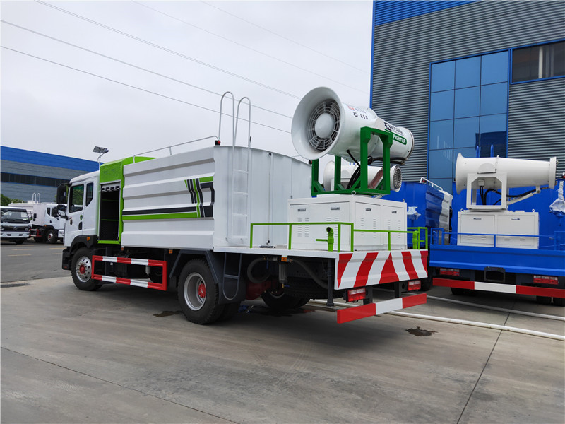 灑水車工作主要由發(fā)動機帶動變速箱,變速箱上安裝的取力器帶動灑水車水泵產(chǎn)生動力,將罐體內(nèi)部的水通過管路噴灑出去,水泵可自吸自排?筛鶕(jù)用戶需求選配抑塵霧炮。